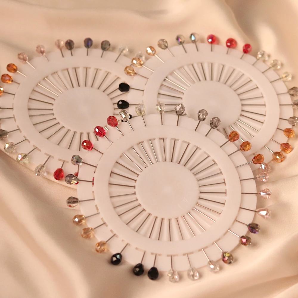Designed with a sleek, straight shape and adorned with sparkling crystals, these pins add a touch of glamour while ensuring your hijab stays in place all day long.