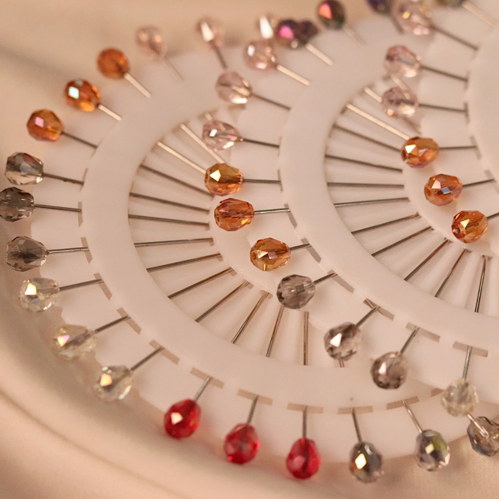 The Crystal Straight Hijab Pins feature sparkling crystal embellishments on a sleek, straight pin design, ensuring your hijab stays secure with added elegance.