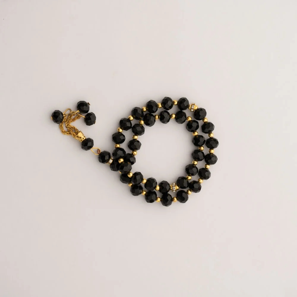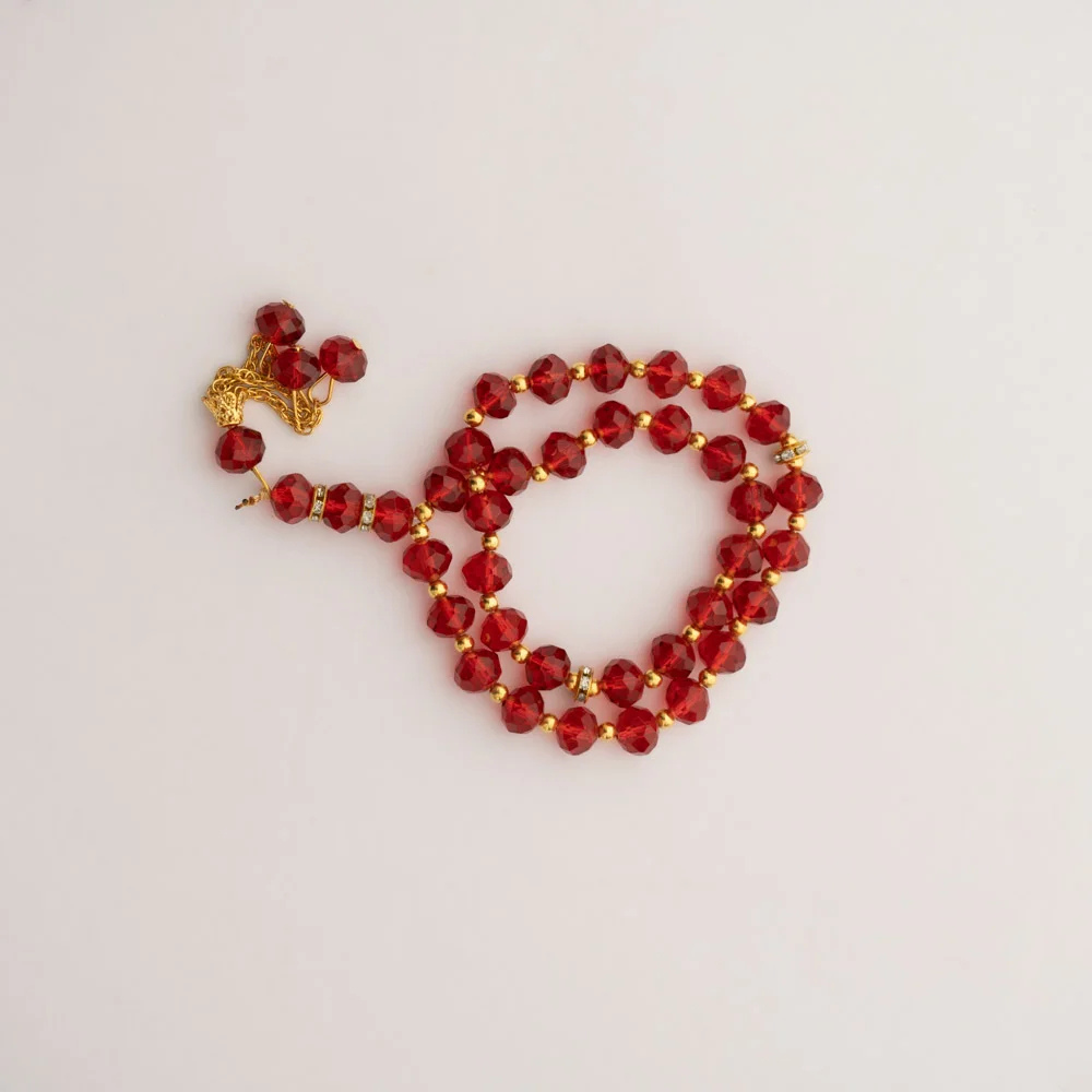 Crafted with high-quality crystal beads and accented with gold detailing, this tasbeeh is both visually stunning and highly durable. The strong metal chain prevents missing beads, ensuring long-lasting use. Its compact and lightweight design makes it easy to carry, so you can engage in prayer wherever you go.